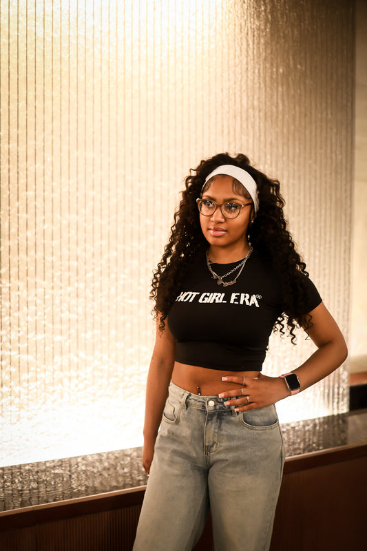 Black "Hot Girl Era" Short Sleeve Crop Top